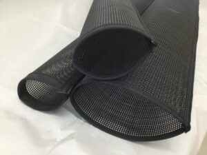 製品 ネトロンWF-1 黒色 円筒形 網目W27mm×H27mm 外径φ75mm×1130mm お客様からの要望 網目はなるべく大きなサイズ(27mm)を希望。パイプの内側に嵌め込みたい。補強用の為、硬くしっかりとした生