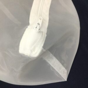 ナイロン網を底有りの筒状に加工し、開口部にヒモを付けた加工品です。 ナイロンメッシュフィルターになります。