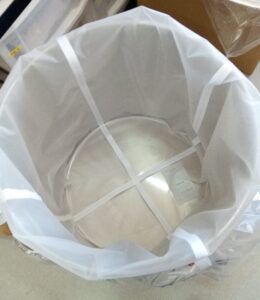 ナイロン250メッシュを開口部外径φ330*高さ1400㎜底有りのフィルターを作成 しました。 ダンボール等の紙くずを他の場所に飛ばないようにする為のフィルターとなります。